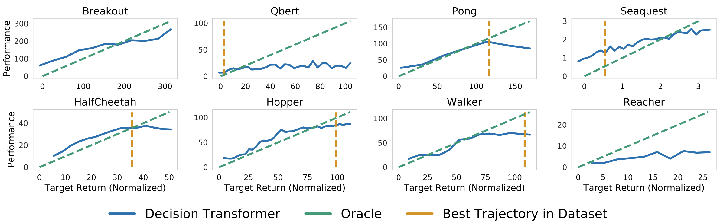 the specified target (desired) returns. Top: Atari. Bottom: D4RL medium-replay datasets. Figure from [1].